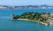 南普陀寺是廈門著名古剎,居于鷺島名山五老峰前,背依秀奇群峰,面臨碧澄海港,風景絕佳。始建于唐代,為閩南佛教勝地之一。寺內(nèi)天王殿、大雄寶殿、大悲殿建筑精美,雄偉宏麗,各殿供奉彌勒、三世尊佛等。藏經(jīng)閣珍藏佛教文物豐富多彩,有經(jīng)典、佛像、宋代銅鐘、古書等,明萬歷年間血書《妙法蓮花經(jīng)》和何朝宗名作白瓷觀音等最為名貴。