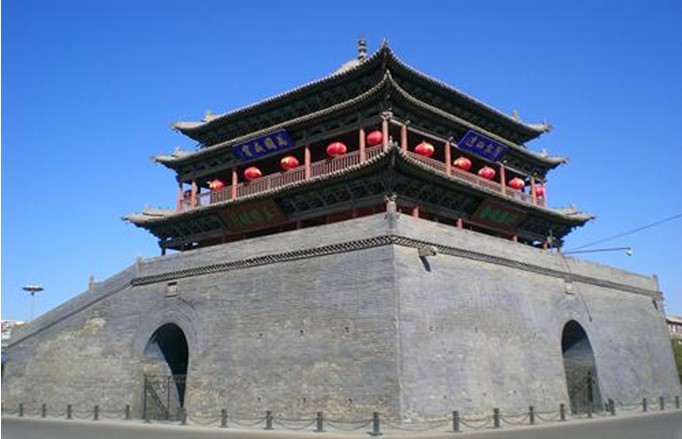 俗稱鼓樓,位于甘肅張掖市中心,東西南北四條大街交匯于此,是河西走廊現(xiàn)存最大的鼓樓。樓于明正德二年(1507年)建在一座磚包的高臺(tái)上,臺(tái)基寬32米,高9米,基座至樓頂30多米。樓為三層木構(gòu)塔形,飛檐翹角,雕梁畫棟,結(jié)構(gòu)精巧,造型雄偉壯觀?;?ldquo;十”字洞通向東西南北與四條大街銜接。版權(quán)所有山東聊城聊之旅國(guó)際旅行社有限公司,轉(zhuǎn)載必究!樓上四面懸有匾額:東為“金城春雨”,西為“玉關(guān)曉月”,南為“祁連晴雪”,北為“居延古牧”?,F(xiàn)鼓樓東南角懸唐鐘一口,是以銅為主的合金鑄成,工藝精湛,渾厚雄偉。鐘高1.3米,口徑1.15米,重600公斤。鐘身飾有飛天及朱雀、玄武、白虎、青龍圖案。此鐘古代多用來(lái)報(bào)時(shí)或火災(zāi)報(bào)警。