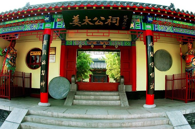 姜太公祠位于臨淄城區(qū),1993年以姜太公衣冠冢為依托而建,總占地面積30000平方米。太公祠是一組中國傳統(tǒng)的中軸對(duì)稱、殿堂廟宇建筑。周文王訪賢遇到姜太公,遂請(qǐng)回拜為太師,尊稱太公望。周武王繼位又尊稱師尚父。姜太公輔佐周王朝滅掉殷商,以首功被分封到了齊國。太公治理齊國,采取“因俗簡禮和通商工之業(yè),便魚鹽之利”等政策,注重農(nóng)、工、商并舉,大力發(fā)展生產(chǎn),齊國很快強(qiáng)大起來。