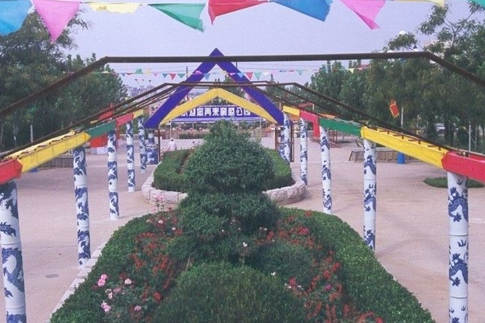 配有兒童賽車、蹦蹦床、秋千、少林軟木樁、晃晃板、空中索道、電動(dòng)奔馬、吉祥如意燈、瘋狂老鼠、碰碰車等30余種兒童玩具,并有人工湖,配有碰碰船、腳蹬游艇。