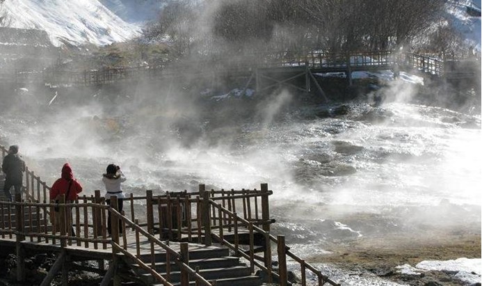 近幾年來,長(zhǎng)白山冬季冰雪旅游發(fā)展很快,而露天溫泉浴是最讓人們眼界大開的項(xiàng)目,泉外冰天雪地、冷風(fēng)習(xí)習(xí),水中熱氣繚繞、笑聲陣陣,一冷一熱對(duì)比分明,真是人生難得的奇妙經(jīng)歷。