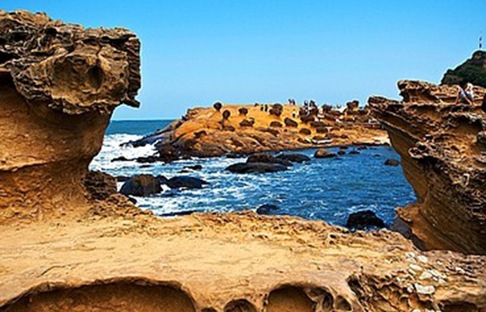 金山舊名“金包里”,濱海的美麗風景為其特色。金山岬東側(cè)450公尺外,有兩座小島,稱為“燭臺雙嶼”,乃海底受蝕的珊瑚礁巖隆起后所形成。金山青年活動中心:為救國團所成立,每年吸引了廿萬人的人潮。