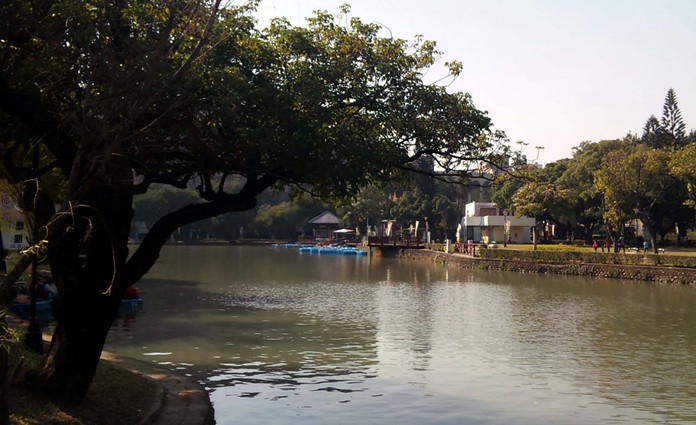臺中中山公園位于臺中市市中心,建于清光緒二年,園內(nèi)的人工湖襯托聳立湖心的中正亭,朱紅倒影浮映水中,為臺中市的代表景觀,公園花木扶疏老樹成蔭,湖畔有小船出租讓游人漫游湖心,園內(nèi)還保存了炮臺山及望月亭等兩處古鎮(zhèn)。