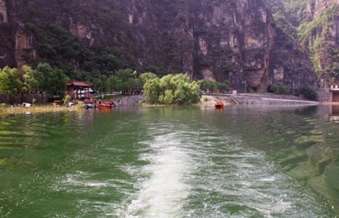 泉河頭風(fēng)景區(qū),主要有上龍灣、 泉河頭風(fēng)景區(qū),主要有上龍灣、下龍灣泉群和青龍山古建筑群組成。“半畝方塘碧澗深,高山流水澈清音”。乍離水源緊缺的博山城,見到這里水氣飛霧,泉瀑涌流,游人格外興奮。泉河一帶,寬闊的水面上輝映著青龍山的倒映,水清見底,魚游淺灘,鵝鴨嬉戲,令人耳目一新。兩處泉源——上龍灣和下龍灣,被疏浚整修成十幾米見方的深水池,四周石柱回護(hù),池深水綠,泉眼密布,噴玉吐珠,常年不竭,且水溫常年保持在15℃左右,適宜養(yǎng)殖熱帶魚類。市、區(qū)水利部門在此投資建成數(shù)畝魚池,飼養(yǎng)從國(guó)外引進(jìn)的虹鱒魚。河畔的銀灰色建筑是新近落成的虹鱒魚酒樓。人們?cè)谟紊酵嫠?,至此品嘗魚鮮,別有一番情趣。從下龍灣沿山路盤旋而上,可見一組古建筑鑲嵌在懸崖峭壁之間,掩映在綠樹繁花之中。頭一座是舊時(shí)人們祈禱風(fēng)調(diào)雨順、五谷豐登的龍王廟。再拾級(jí)東攀,至山門——一座磚砌單檐三門牌樓,高寬約6米,凌空矗立,上書“清音萬古”。進(jìn)牌樓,迎面是幢規(guī)模較大的殿宇——三宮殿。據(jù)殿前石壁透龍碑記載,此殿系明萬歷十二年修建,距今已400余年。這“透龍碑”浮雕石龍,光滑如鏡。當(dāng)?shù)赜惺酌裰{:“青龍山前一條河,既有鴛鴦?dòng)钟轩Z,抬頭望見透龍碑,一眼看到太陽窩”。傳說人摸石碑可逢兇化吉。 晚霞夕映,碑端能照見高聳的無影山。繞過三宮殿,穿過石砌洞道,來到這組古建筑的中心——涼亭。該亭四角八柱,半空飛檐,雄踞山腰。石柱上刻有“炎天無暑氣,清夜有泉聲”的詩聯(lián)。登亭遠(yuǎn)眺,版權(quán)所有山東聊城聊之旅國(guó)際旅行社有限公司,轉(zhuǎn)載必究!田園阡陌,歷歷在目,淄水長(zhǎng)流,盡收眼底。從涼亭上攀,則是一依山傍崖的雙層閣樓,上層是白衣閣,底層過一拱門便是青龍洞,這洞外闊內(nèi)窄,深邃曲折,怪石嶙峋。白衣閣東側(cè),也是一雙層建筑,圓柱飛檐,上為觀音殿,下為道房,其間亦有洞口通后山。這組古建筑依勢(shì)構(gòu)造,錯(cuò)落有致,布局精巧。這些景觀和建筑是泉河附近群眾集資修復(fù)的,基本保持了明清建筑的風(fēng)格。