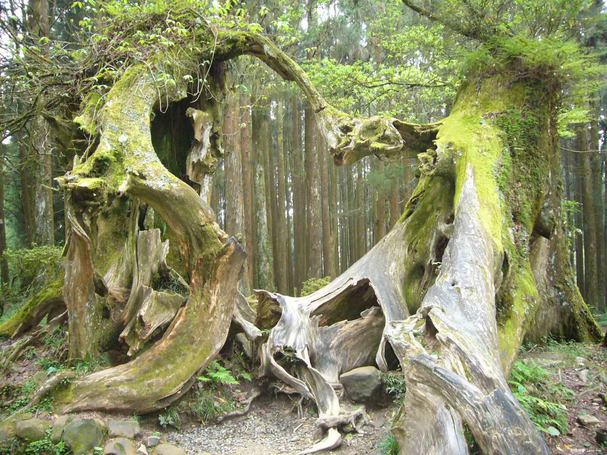 三、樹(shù)齡超過(guò)千年的巨木特多,有“阿里山神木”之稱的紅檜巨木,即超出三千年以上。