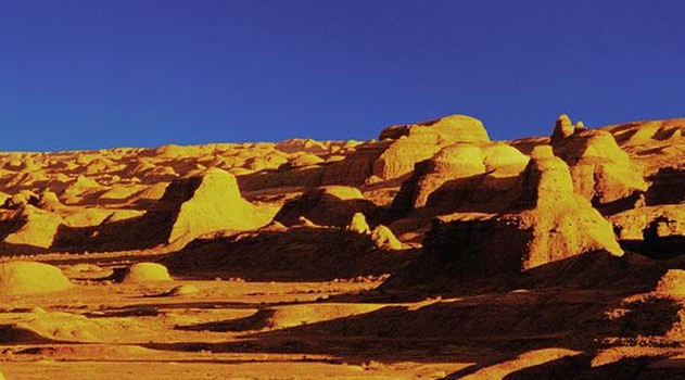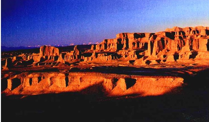 克拉瑪依市北行100公里,在烏爾禾鄉(xiāng)東南三公里,有一處獨特的風(fēng)蝕地貌,定名為風(fēng)城,人們習(xí)慣稱它為 “魔鬼城”。“魔鬼城”是一片雅丹地貌,面積10平方公里,地面海拔350米左右。