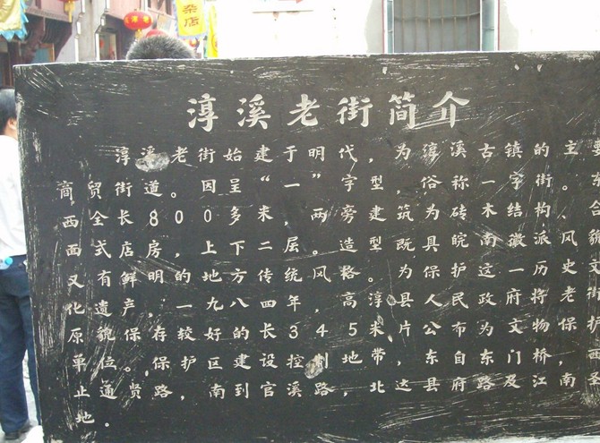 高淳淳溪老街位于高淳的商業(yè)中心。它自宋朝正式建立街市,至今已有900余年的歷史,如今那兒房屋新舊交替?,F(xiàn)存的建筑物多為明清所建。這些建筑大多具有鮮明的地方特色和典型的建筑風(fēng)格。淳溪老街因呈“一”字形,又稱一字街。其全長(zhǎng)345米,寬4.5-5.5米不等,中間用粉紅色的胭脂石橫向鋪設(shè),兩邊用青條石縱向圍繞,整條街面色鮮艷,整齊美觀,歷經(jīng)八百年風(fēng)吹雨打,人行車壓,依然是“赤心未改”,堅(jiān)固耐用。