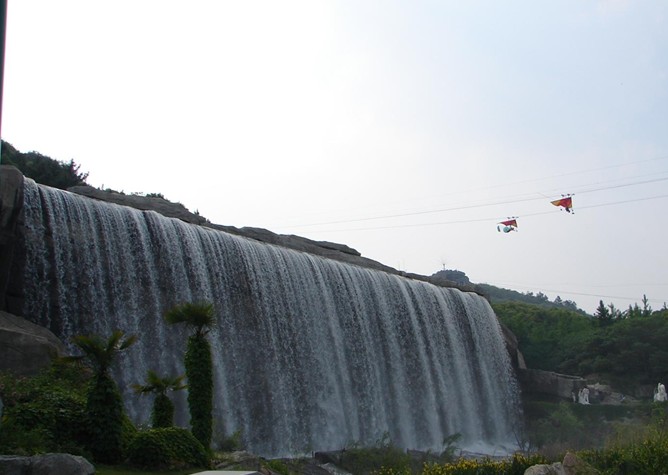 游樂項目是蘇州樂園的主體旅游資源,樂園從歐美引進了懸掛式過山車、夏威夷海浪、豪華波浪、高空彈射、龍卷風、天旋地轉(zhuǎn)等一大批驚險刺激的高科技游樂設(shè)施。樂園的游樂項目依山傍水,與山水自然景觀水乳交融,彰顯了景觀的獨特性,構(gòu)成了一幅具有生態(tài)特征的動態(tài)山水畫卷。獅山腳下的過山車猶如神龍穿山戲水,雄獅與神龍在大自然中和睦相處,象征著天地吉祥。