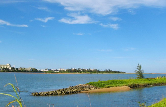 這里風(fēng)光更為迷人。集三河(萬泉河、龍滾河、九曲江)、三島(東嶼島、沙坡島、鴛鴦島)、兩港(博港、潭門港)、一石(砥柱中流的圣公石)等風(fēng)景精華于一地,兩道天然沙堤猶如巨臂總攬一懷秀色。出海口既有海水、沙灘、紅礁、林帶,又有明媚陽光、新鮮空氣、清柔流泉,是目前世界河流出??谧匀伙L(fēng)光保護(hù)最好的地區(qū)之一。