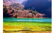 高瀑布是九寨溝最高的瀑布。站在五花海的頂部俯視其底部,那景觀妙不可言,湖水一邊是翠綠色的,一邊是湖綠色的,湖底的枯樹,由于鈣化,變成一叢叢燦爛的珊瑚,在陽光的照射下,五光十色,非常迷人。五花海有著“九寨精華”及“九寨一絕”的美名,站在五花海最高點,即老虎石上俯視,可一覽五花海全景。此處也是九寨溝最佳取景點之一。金秋時節(jié),四周山坡上的彩葉紛紛墜落在池水中,倒影、水波、陽光、落葉的完美結(jié)合,將人間最絢爛的顏色糅合在五花海水中。 五花海是九寨溝的驕傲,從老虎嘴俯瞰,顏色好夸張,難道是有人打翻了阿拉伯神話中的藏寶箱?鋪張出一地豪華,亦或是孔雀翎織就的羽衣,拿是拿不走的,只好塞在記憶里。 犀牛海水下的色彩寧靜了許多,好像大自然進入了哲理狀態(tài)的思考,綿軟的水草只需輕輕抖動幾下腰身,就讓那藍和綠幻化出無限神秘;海拔最高的常海,已是一片冰封,壯美得肅穆。珍珠灘上的激流破冰而出,水流白中泛藍,銀中凝綠,更有大珠小珠落玉盤的韻味。夕陽照在海拔較低的蘆葦海上,搖曳出滿地金黃,仿佛在講述一個古老的故事。不時有水鳥從沼澤中撲簌簌飛起,原來,故事中的情節(jié)永遠都不會完結(jié)。