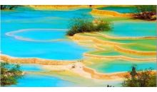 九寨溝是白水溝上游白河的支溝,以有九個藏族村寨(所以又稱何藥九寨)而得名。黃龍風(fēng)景區(qū)位于四川省阿壩藏族羌族自治州松潘縣境內(nèi),由黃龍本部和牟尼溝兩部分組成。主景區(qū)黃龍溝位于岷山主峰雪寶頂下,以彩池、雪山、峽谷、森林“四絕”著稱于世,是中國唯一的保護完好的高原濕地?!叭碎g仙境”、“童話世界”是形容九寨與黃龍最合適詞匯?!熬耪瘹w來不看水”,水是九寨溝的精靈,湖、泉、瀑、灘連綴一體,飛動與靜謐結(jié)合,剛烈與溫柔相濟。 “人間瑤池”黃龍溝位于松潘縣東約35千米處,是玉翠山中一條南北向的溝谷,長約7.5公里。與九寨溝一山之隔,但因雪山阻隔,需經(jīng)公路繞行100公里方可到達。這條溝的奇妙之處是溝底的巖石,晶瑩光滑,類似石灰?guī)r溶洞中的鐘乳石,巖石跌宕起伏,順著山溝,曲折蜿蜒,猶如一條黃龍盤旋而上。黃龍奇異的景色,使它擁有“黃龍?zhí)煜陆^”的美稱。