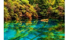 因溝內(nèi)分布著9個藏族村寨而得名,海拔2000~3000米,屬高山深谷碳酸鹽堰塞地貌,以翠海(高山湖泊)、疊海、彩林、雪山、藏情“五絕”馳名中外,被譽為“夢仙境”和“童話世界”。主景長沙有六公里,面積6萬多公頃,有長海、劍巖、諾日朗、樹正、扎如、黑海六大景觀,呈“Y”字形分布,以水景最為奇麗,泉、瀑、河、灘將108個海子連綴一體,碧藍澄澈,千顏萬色,多姿多彩,“水在樹間流,樹在水中長”,有“黃山歸來不看岳,九寨歸來不看水”和“世界水景之王”之稱。
