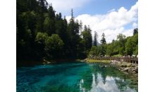 九寨溝的活水泉又異常潔凈,加之梯形狀的湖泊層層過濾,其水色愈加透明,能見度高達20米。翠海、疊瀑、彩林、雪峰、藏情,被譽為九寨溝“五絕”。水乳交融,美不勝收?,F(xiàn)代肖草《九寨溝》詩:“放眼層林彩池漣,魚游云頭鳥語歡;飛瀑灑落拂面來,九寨山水揚海天”給予真實詮釋。