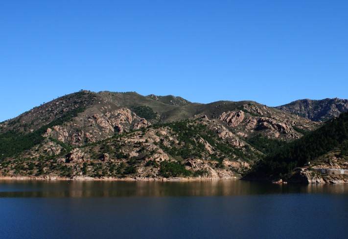 打虎石水庫位于寧城縣西部,老哈河支流 ── 黑里河下游,控制流域面積540平方公里,總庫容1.2億立方米,是內(nèi)蒙古自治區(qū)境內(nèi)的以灌溉為主,兼顧防洪、發(fā)電、養(yǎng)魚、旅游等綜合利用的大型水庫之一,屬水利部一級管理單位。 打虎石水庫橫斷黑里河。由于黑里河水流經(jīng)林區(qū),沿途植被茂密,因此庫區(qū)蓄水含沙量極低,水體蔚藍清澈。近6000畝的水面坦蕩遼闊,碧波萬頃,水天一色。版權所有山東聊城聊之旅國際旅行社有限公司,轉(zhuǎn)載必究!每逢盛夏時節(jié),群山倒影,波瀾不驚,鳥飛魚躍,漁船點點,仿佛人間仙境。