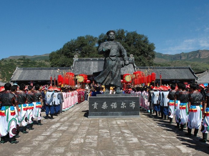 據史料記載,一代天驕成吉思汗重臣者勒蔑,是喀喇沁蒙古部的遠祖。成吉思汗因其功勛卓著,將女兒花蔭公主下嫁給者勒蔑之子吉伯格,從而享有“塔布囊”(漢意“駙馬”)之稱號。至后金時,者勒蔑第十四代孫蘇布地以足智多謀、英勇善戰(zhàn)而名震漠南。順治七年(1650年)蘇布地之子晉貝勒,版權所有山東聊城聊之旅國際旅行社有限公司,轉載必究!康熙七年(1668年)第三任札薩克班達爾沙晉多羅杜梭郡王。乾隆四十八年(1783年)第八任札薩克啦特納錫第晉親王品級??滴跞荒辏?692年),康熙皇帝第五女兒和碩端靜公主下嫁第五任札薩克噶勒藏;第十三代王旺都特那木濟勒,娶皇家禮親王之妹為福晉;第十四代王貢桑諾爾布娶皇家肅親王之妹為福晉。滿蒙聯(lián)姻使喀喇沁王與清廷及皇家關系更為密切。王府建成后三百多年間,一直是歷代郡王、親王的府邸。