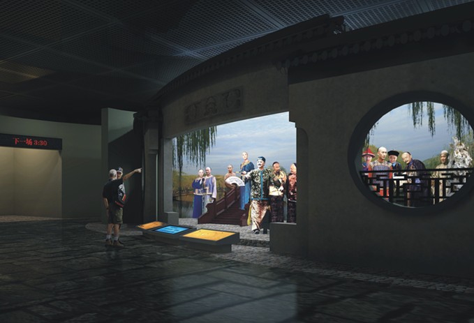 展廳平、立面長短弧線與直線的有機結(jié)合,象征揚州歷史連綿不斷,充滿無限生機和活力。展覽雖沒有刻意尋求造型元素和藝術(shù)符號來強化主題,但由形、色、光構(gòu)成的整個藝術(shù)空間,始終充滿著揚州文化特有的品質(zhì)和風(fēng)格。