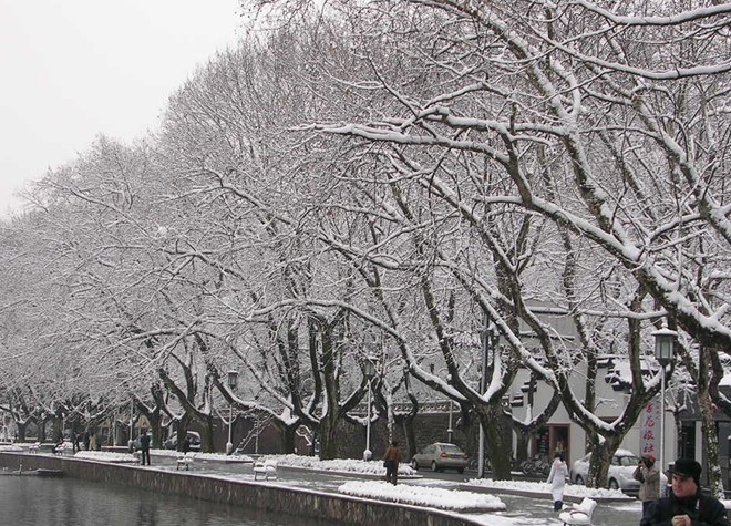 晶瑩的雪花濕漉漉地散落江南,