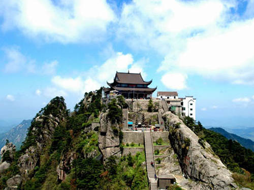 坐落在安徽省,是地藏菩薩的道場(chǎng),中國(guó)四大佛教名山之一,全國(guó)著名游覽避暑勝地。九華山北俯長(zhǎng)江,南望黃山,東監(jiān)太平湖。 它以佛教文化習(xí)俗和奇麗的自然風(fēng)光享譽(yù)海內(nèi)外,尤其在東南亞華人世界更具盛名。 九華山素有九十九峰之稱(chēng),千米以上的高峰20多座,為首的是十王峰。天臺(tái),天柱,獨(dú)秀,花臺(tái),云外峰如臺(tái)似柱,聳入云霄;蓮花,芙蓉,翠屏,以微,翠蓋峰有芙蓉出水之姿“間聳航”,“雄叫天門(mén)”等茂石更是神工鬼斧。山間秀溪縈環(huán),銀瀑飛,景色迷人。優(yōu)美傳奇的舒印月和九子泉聲更富山水之情,給人以美的享受。古稱(chēng)陵陽(yáng)山、九子山,唐天寶年間改名九華山;因有九峰形似蓮花而得名