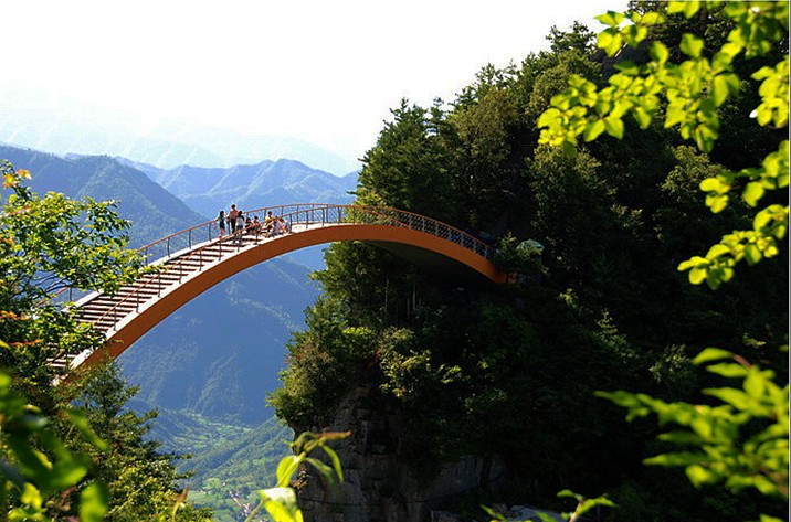 飛云渡是一座橫亙燕子埡壑口上空的全鋼結(jié)構(gòu)的觀景橋,這座鋼橋懸空高、跨度大,是亞洲海拔最高的景觀橋。登上燕天飛渡,變幻莫測(cè)的自然景觀,一眼望不到邊際的原始森林,是那樣令人驚奇和癡迷。兩岸老態(tài)龍鐘的黃楊,古樸郁香的巖柏,蒼勁挺拔的冷杉,翔于林間的走獸飛禽,一切是那樣的和諧寧?kù)o,自在而安詳。