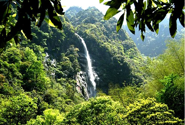 太平山瀑布是由其獨(dú)具一色而聞名,其水源來自太平山頂?shù)墓拍经h(huán)抱的平湖,清泉順山勢往下流,到絕壁處便飛瀉直下,先是瀉向一丈有余巨石上,濺起一簇簇如珠似玉的水花,鳴聲如雷,回蕩山谷。瀑布沿著巨石折古而行,流入一個大巖池,環(huán)池旋轉(zhuǎn)后,又沿石縫折跌而下,形成二級飛瀑,水流又沿石入池,漫過池沿而下流,到斜壁處飛瀉入深潭。形成三級瀑布,構(gòu)成太平山的飛瀑奇觀。