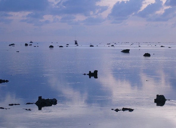 中沙大環(huán)礁是南海諸島中最大的環(huán)礁,全為海水淹沒,水深一般9~26米。大環(huán)礁東側是深而大的地殼斷裂帶,陸殼和洋殼接觸處以51°~58°陡坡下降到4000米海盆上。大環(huán)礁南部與南沙群島的雙子群礁間海域,是南海最深處(-5559米),熱流量、布格重力和磁力都異常偏高,可能與陸塊漂移有關。中沙群島中的暗沙邊緣突起、彼此間的斷塊又不相聯(lián),因此造成許多獨立個體。斷缺部分成為出入□湖的天然水道?!鹾纫嗌⒉加邪瞪?,其中以漫步暗沙最淺,僅9米。