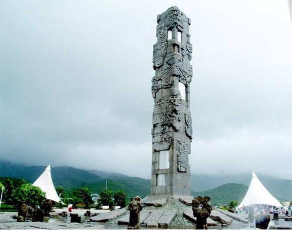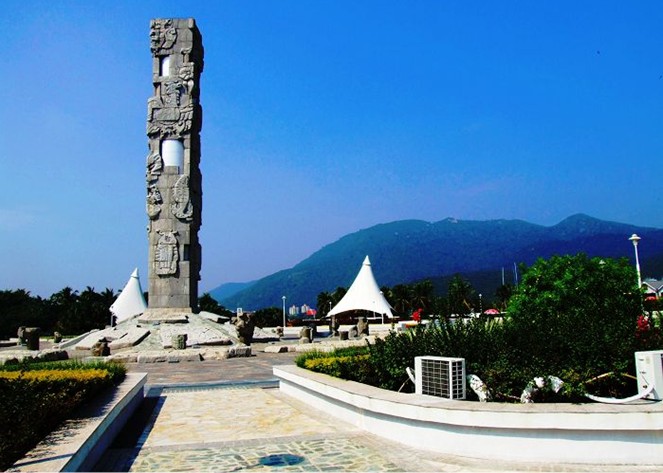 亞龍灣中心廣場,位于三亞市東南28公里處。廣場以圖騰柱向藍(lán)天升騰,以雕塑群向大地和大海延伸,其宏偉氣勢和獨特的藝術(shù)造型,以有限的藝術(shù)空間形式,引導(dǎo)我們的想象向無限的空間擴展。廣場外圍設(shè)計的五組白色風(fēng)帆式的尖頂帳篷及大型彩色噴泉,給具有古老文化意蘊的雕塑增添了現(xiàn)代氣息。