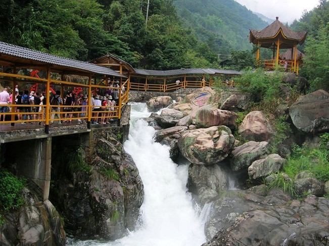 第一景段自龍崗地塔起至魚跳八仙潭止,俗稱"龍井峽"為巨溪流經(jīng)的塢谷,長約18公里。龍井峽內(nèi)奇峰秀瀑,危巖多峭,有"白馬巖中出,黃牛壁上耕"之譽。第二景段自魚跳華光橋起至上溪太子尖止,稱之"上溪峽",長約26公里,峽谷地勢高峻,水流湍急,山石奇趣,又是國寶雞血石的唯一產(chǎn)區(qū);第三景段稱"浙門峽",自太子尖起至馬嘯獅石垅村止,全長近30公里,峽谷內(nèi)山瀑疊生,石嵐爭俏擁有大小石門等知名度極高的奇觀妙景。