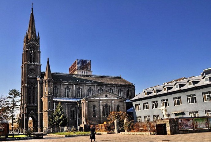 清光緒二十四年(戊戌1898年),法國巴黎天主教外方傳教會神父蘭祿業(yè)和古若瑟從長春來吉林傳教。光緒二十八年(壬寅1902年)購買了今天主教堂所占的土地,開始籌建天主教堂。從1917年動工,費時10年,于民國十五年(丙寅1926年)落成。