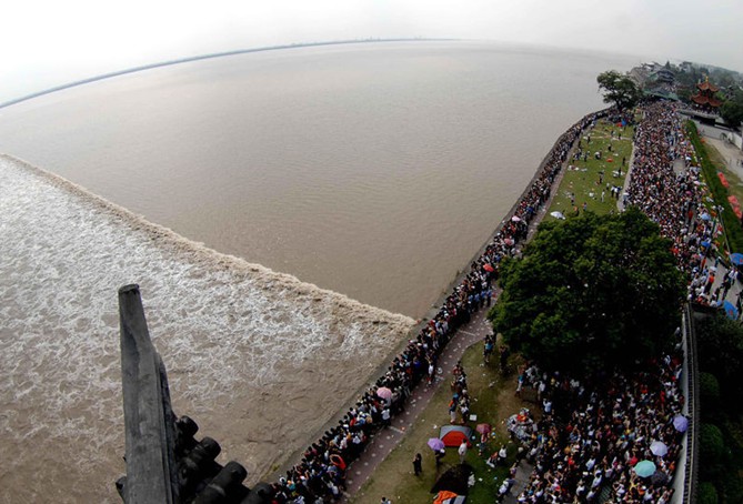 海寧是觀錢江潮之勝地,這與海寧獨(dú)特的地理?xiàng)l件有關(guān)。錢塘江到杭州灣,外寬內(nèi)窄,外深內(nèi)淺,是一個(gè)非常典型的喇叭狀海灣。出??跂|面寬達(dá)100公里,往西至澉浦,江面驟縮到20公里,至海寧鹽官鎮(zhèn)一帶時(shí),江面只有3公里寬。起潮時(shí),寬深的灣口,一下子吞進(jìn)大量海水,由于江面迅速收縮變淺,版權(quán)所有山東聊城聊之旅國(guó)際旅行社有限公司,轉(zhuǎn)載必究!奪路上涌的潮水來(lái)不及均勻上升,便后浪推前浪,一浪更比一浪高,形成了陡立的水墻。