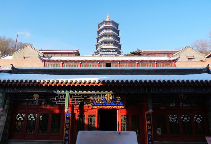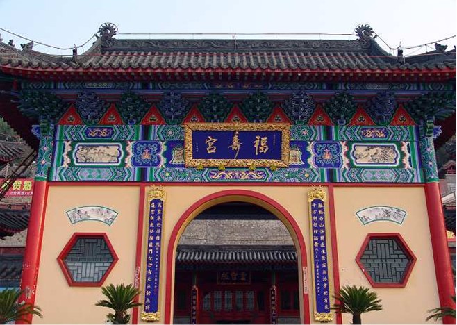第一層為山門,建有馬殿。青石臺基,“福壽宮”匾額高懸。殿內有彩塑紅白二馬,經(jīng)左右青龍白虎兩個配門踏甬道進入二層大殿。左右鐘鼓二樓。正殿關岳殿,正中關公神像,前供岳飛神位。殿內東為龍王神像,西為財神。版權所有山東聊城聊之旅國際旅行社有限公司,轉載必究!東配殿為兩仙堂,內供紀仙、柳仙。大殿東西各有配房五間,東為講經(jīng)堂,西為大仙堂。第三層為三座大殿。中為碧霞宮,東殿為呂祖殿,西殿為大仙堂。第四層東西二大殿,東殿為三宮殿,西殿為娘娘殿。最頂一層為三清殿。
