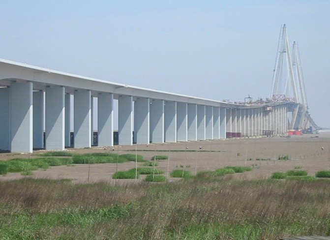 杭州灣跨海大橋是一座橫跨中國杭州灣海域的跨海大橋,它北起浙江嘉興海鹽鄭家埭,南至寧波慈溪水路灣,全長36公里,比連接巴林與沙特的法赫德國王大橋還長11公里,已經(jīng)成為中國世界紀錄協(xié)會世界最長的跨海大橋候選世界紀錄,成為繼美國的龐恰特雷恩湖橋和青島膠州灣大橋是目前世界上最長的跨海大橋后世界第三長的橋梁。