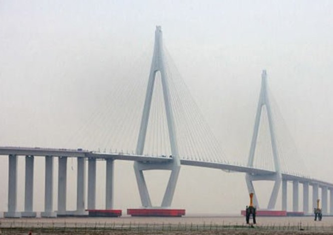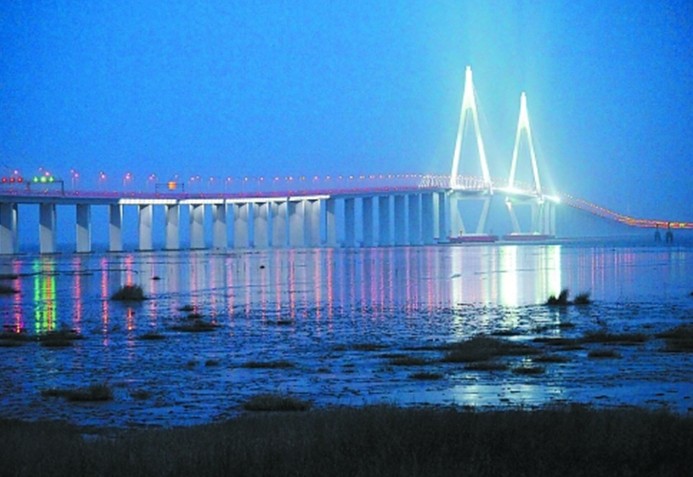 杭州灣跨海大橋工程共使用鋼材767000噸,原本預計2009年完工,正好趕上2010年上海世博會,一箭雙雕——但不管它的過去如何,現(xiàn)在又如何,都會名留青史——成為一方建筑奇觀!