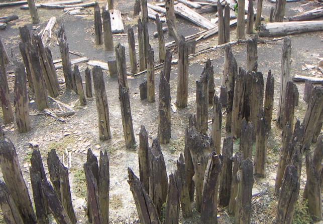 遺址現(xiàn)場展示,西位于博物館東南100米處占地面積2300平方米。以考古發(fā)掘場景復(fù)原和“干欄式”建筑重建,先民生產(chǎn)生活場景再現(xiàn)為文體內(nèi)容。在2800平方米考古發(fā)掘現(xiàn)場內(nèi)布滿密密麻麻的木建筑構(gòu)件和散布其間的文物,不由得讓人回想當時土破驚天的場面。在復(fù)原的"干欄式"建筑內(nèi)外布置著各類生活、生產(chǎn)場景,婦女們紡紗織布,男人們斫木蓋房。有的磨制骨器,有的搗谷脫殼,有的和泥制陶,有的凝神雕刻,使人仿佛回到了遠古時代,親身體驗先民創(chuàng)造燦爛文化的過程。在現(xiàn)場展示區(qū)還有河姆渡古生育 文化園,由著名學(xué)者費孝通題名,向游客介紹河姆渡先民的生育理念和生育行為。