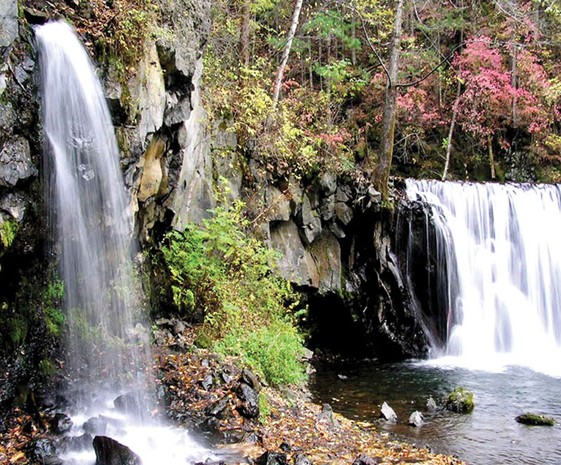 吊水壺瀑布景區(qū)距離三角龍灣15分鐘的車程,版權(quán)所有山東聊城聊之旅國(guó)際旅行社有限公司,轉(zhuǎn)載必究!與金龍頂子山相依為伴。吊水壺瀑布是火山爆發(fā)后,河床受張力斷迭形成的瀑布,寬約10米,落差7米。更別致的是另有一處水流好似噴泉,自崖中間凌空噴下,象茶壺中的水從壺嘴中倒出來一樣,故當(dāng)?shù)厝朔Q其為“吊水壺”。吊水壺瀑布景致壯觀秀麗,流水清澈見底,冬天水不封冰,夏日冰涼刺骨。炎熱的盛夏時(shí)節(jié)前去,一定會(huì)看到水珠飛濺、霧氣蒙蒙的景象,一陣陣涼氣襲來,沁人心脾,可謂避暑度夏的最好去處了。