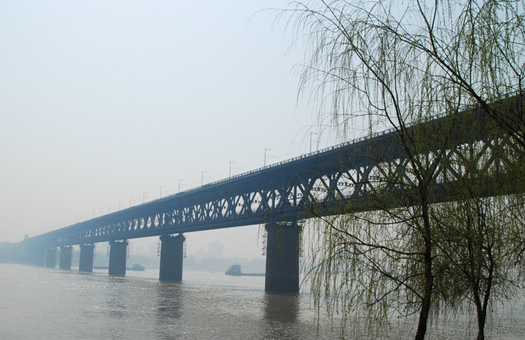 武漢長江大橋(The Wuhan Yangtze River Bridge),是中國第一座橫跨長江的橋梁,大橋為公路鐵路兩用橋,上層為公路,雙向四車道,兩側(cè)有人行道;下層為復(fù)線鐵路。