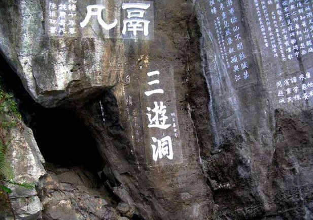 “夷陵峽口明月夜,此處逢君是偶然。一別五年方見面,相攜三宿未回船。往事渺茫都似夢,舊游零落半歸泉。未死會應(yīng)相見在,不知何地復(fù)何年”。最后由白居易作《三游洞序》題于石壁之上說:“以吾三人始游,故曰為三游洞。”此序以紀(jì)其事,三游洞因此而得名,因有后來者,故稱為“前三游”。1059年冬,宋蘇洵、蘇軾、蘇轍父子三人出川赴京,途經(jīng)夷陵,亦乘興游賞此洞,亦各賦詩一首題寫于洞中,人稱“后三游”。蘇轍詩云:“洞前危徑不 容足,洞中明曠坐百人。三人一去無復(fù)見,至今冠蓋長滿門”??梢娙味粗了未殉蔀槲娜搜攀?、達(dá)官貴人游覽、懷古的地方,以至摩肩接踵,洞門壅塞。
