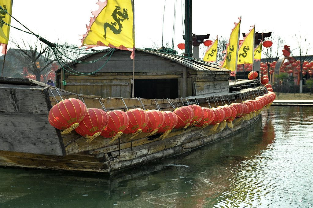走進(jìn)大門(mén),繞過(guò)一座前有張擇端站像、后有清明上河圖傳奇故事浮雕的影壁,便是公園的主題廣場(chǎng)。版權(quán)所有山東聊城聊之旅國(guó)際旅行社有限公司,轉(zhuǎn)載必究!廣場(chǎng)中央的池水中浮動(dòng)著一只造型古樸的宋代木船,船上桅桿高聳,云帆高掛,象征著宋代繁忙的漕運(yùn)和高超的造船技術(shù)。
