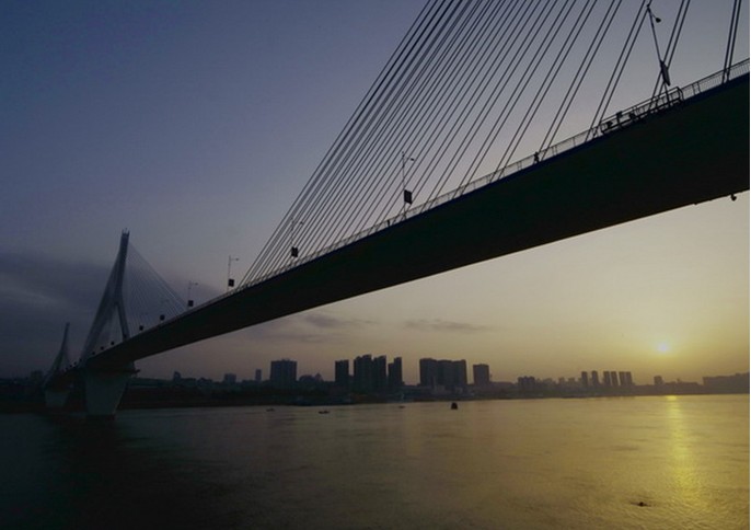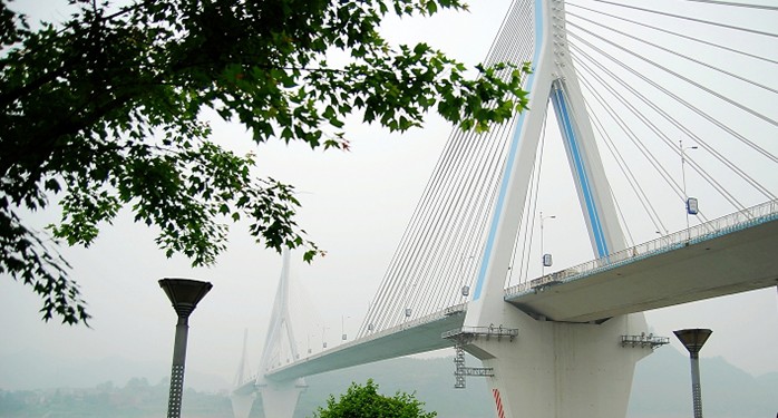 夷陵長江大橋位于湖北省宜昌市,是聯(lián)系宜昌市南、北兩岸跨越長江的城市橋梁。于1998年11月28日動工,2001年12月竣工通車, 總投資6.1億元人民幣。橋位距葛洲壩水利樞紐大壩下游約7.6km,橋址區(qū)江面寬約800m,最大水深約23m。版權(quán)所有山東聊城聊之旅國際旅行社有限公司,轉(zhuǎn)載必究!建設(shè)結(jié)合橋址區(qū)航道具體情況,大膽創(chuàng)新,首次提出單索面三塔斜拉橋方案,其2 x 348m的主跨為國內(nèi)第一,在同類型橋梁中亦屬世界首位。大橋工程全長3.246km,設(shè)計(jì)荷載:汽車-超20級,主橋是國內(nèi)第一座單索面預(yù)應(yīng)力混凝土三塔斜拉橋,跨度(m)布置為38+38.5+43.5+2x348+43.5+38.5+38八跨連續(xù),主橋長936m,總投資6.136億元。版權(quán)所有山東聊城聊之旅國際旅行社有限公司,轉(zhuǎn)載必究!主橋橋面寬23.0m,設(shè)四條機(jī)動車道,車道外側(cè)各設(shè)2.0m寬人行道,橋面中間索區(qū)寬3.5m。
