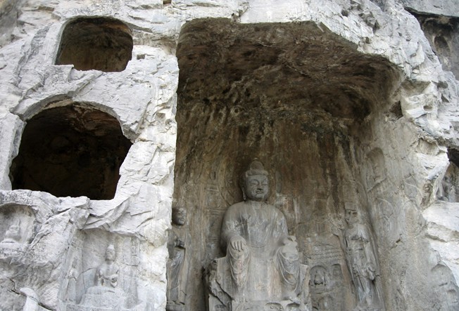 門石窟是中國石刻藝術(shù)寶庫之一,位于河南省洛陽市南郊伊河兩岸的龍門山與香山上。開鑿于北魏孝文帝遷都洛陽之際,之后歷經(jīng)東魏、西魏、北齊、隋、唐、五代的營造,南北長達1公里,至今存有窟龕2345個,造像10萬余尊,碑刻題記2800余品。其中“龍門二十品”是書法魏碑精華,褚遂良所書的“伊闕佛龕之碑”則是初唐楷書藝術(shù)的典范。龍門石窟延續(xù)時間長,跨越朝代多,以大量的實物形象和文字資料從不同側(cè)面反映了中國古代政治、經(jīng)濟、宗教、文化等許多領域的發(fā)展變化,對中國石窟藝術(shù)的創(chuàng)新與發(fā)展做出了重大貢獻。2000年入選世界文化遺產(chǎn)。