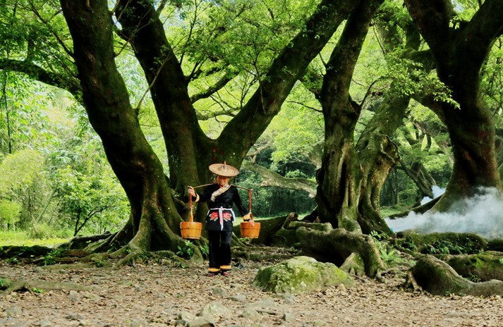 楊家溪源自柘榮東山頂和目海尖兩大高峰,繞太姥山麓,其中下 游流域大致分為九鯉溪與楊家溪,自福鼎烏杯始至鼎霞交界的湖里, 稱九鯉溪,從蘭兜至渡頭為楊家溪。九鯉溪流程約7公里,沿途有將 軍潭、鯉魚墓、九鯉湖等名勝景點和新建的九鯉電站景區(qū);楊家溪流 程約8公里,有七曲十二瀨(淺急之灘),沿流潭、瀨、灘交替分布, 溪水清澈見底。兩岸峽谷青山郁郁蔥蔥,奇花異草紛呈異彩。樟樹、 楓樹、櫸樹、榕樹,毛竹、綠竹、花竹、方竹、紫竹、黃竹、金竹, 杜鵑、黃楊、雀梅、赤楠、蘆葦?shù)染善植?,四季常青,花香鳥語。版權所有山東聊城聊之旅國際旅行社有限公司,轉(zhuǎn)載必究! 尤為引人注目的是兩岸溪灘;既有罕見的樟樹成林,呈帶狀連綿十多 里,常年翠綠;又有蘆荻片片,春夏碧綠成茵,初冬白絮遍野;還有 萬株連片的楓樹林,為江南面積最大的楓香林,深秋紅葉輝映,酷似 緋云停駐。緊鄰楓香林的是十幾棵大古榕樹,據(jù)說植于南宋初期,歷 經(jīng)800多年滄桑,依然翠綠成蔭。版權所有山東聊城聊之旅國際旅行社有限公司,轉(zhuǎn)載必究!其中一株樹干周長12.6米,主干 中空,有7個洞口可容人入洞。乘筏順流全程約需2小時,或飛奔于 礫石堆積、浪花飛濺的淺灘,或傲游在碧水瀠洄、一平如鏡的深潭; 時而飛筏破浪有驚無險,時而隨流飄蕩逍遙自在,瞬間變化萬千,令人嘆絕。