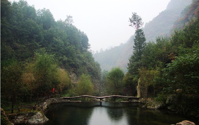 景區(qū)內(nèi)溪澗密布,深潭飛瀑,星羅棋布:流泉、石潭、綠澗、飛瀑目不暇接,孱孱溪流,清澈見底,一瀉三跌,飛珠濺玉,大山因水而生動,奇石因水而靈秀。而養(yǎng)子溝之所以讓人迷戀,不僅僅因為這些千古流傳的美麗的傳說,更因為它的原始風貌和大自然的鬼斧神工。1000多米的老龍?zhí)肚?,青如綢緞的瀑布從10米高空上飛流直下,發(fā)出振耳欲聾的沖擊聲;站在明鏡崖下抬頭望去,只見眼前崖峰高入云天、巖峰綠樹倒掛,宛若“明鏡高懸”;同心樹邊,柳樹、連翹、白臘和櫻桃,四種截然不同的植物卻同生一條根、共有一個心、互為依存,看看它們,再想想到勾心斗角的煩雜人世,怎能不心生感嘆;來到會仙臺邊,蘇東坡的詞不禁涌現(xiàn)腦海:“我欲乘風歸去,又恐瓊樓玉宇,高處不勝寒。起舞弄清影,何似在人間。”