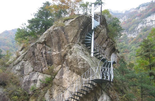 龍峪灣有紅幢溝、黑龍谷、青石峽、磨子壕、八間凹 、牛角窯、羚羊巢、斷山壕等幽谷20余條。云山廝磨,幽遠(yuǎn)深邃,青嶂連空,極目無(wú)際。仰觀天象,煙嵐騰騰,如置身云海;俯瞰谷底,一線茫茫,覺(jué)怵目驚心。谷旁、澗邊多有怪石嶙峋,如人似獸,千姿百態(tài)。如“垂釣石”,站立河中,平面光潔,狀如臺(tái)桌,登其上可小憩觀瀑,著棋垂釣。距其 1米處,河中心有一層次分明的天然石塔,上臥石鳥(niǎo),引頸望水,似觀魚(yú)蝦遨游,名“鸞鳥(niǎo)觀魚(yú)塔”。落葉松林盡頭,山門(mén)開(kāi)處,怪石直矗,上坐彌勒,閉目合十,面壁入定,稱(chēng)為“彌佛坐禪”。還有龍爪石、累卵石臥牛石、蒼鷹石、伏虎石、蛤蟆石、天柱石等皆以其形象而命名。
