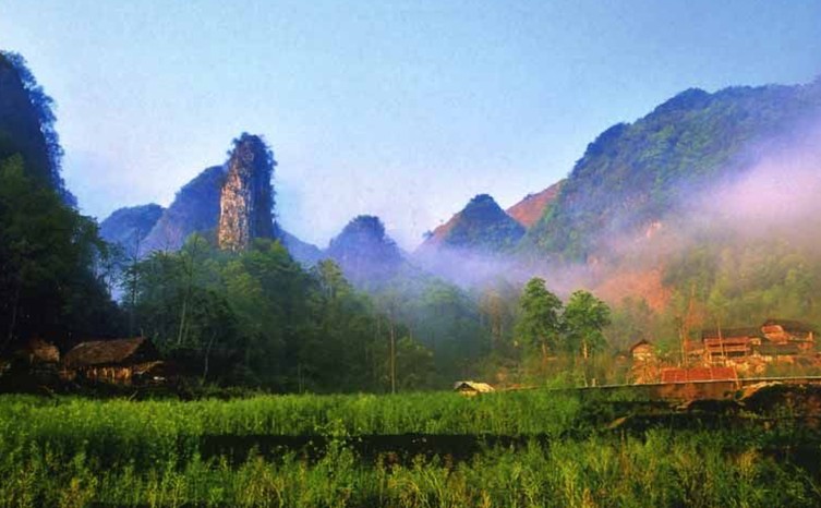 3、 竹林寨:位于格凸河伏流中段的山上,居住的是高山苗族,以吊角樓著稱。周圍是高大茂密的古樹林,翠竹叢生,紫藤纏繞。