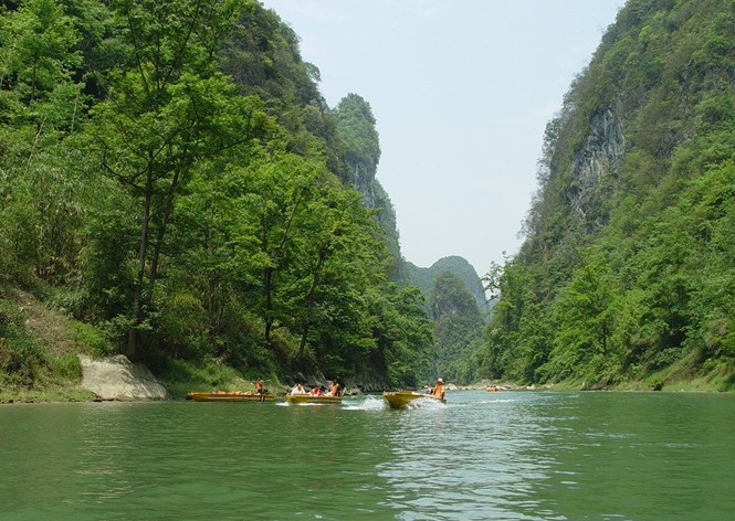 4、 小穿洞:又名"冒鼓天",該洞口高50米,寬40米,海拔790米,格凸河加上長順的擺河匯流后從小穿洞口流出,景色秀美。
