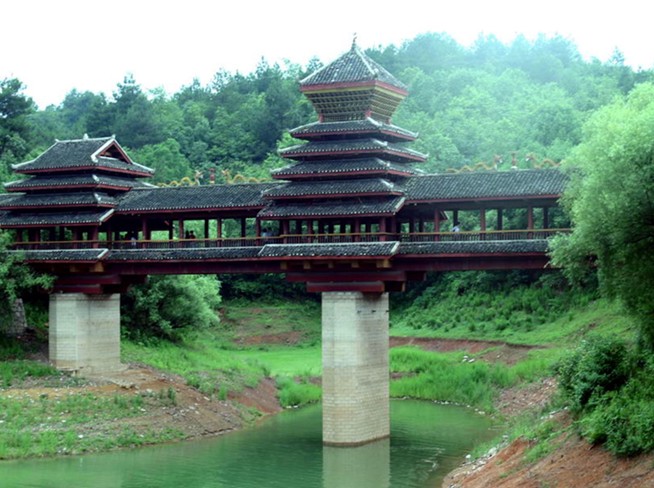 花橋是侗鄉(xiāng)跨越溪河、避雨納涼、點綴風景,集多種用途于一體的橋梁。它的起源還流傳著許多優(yōu)美的神話傳說。