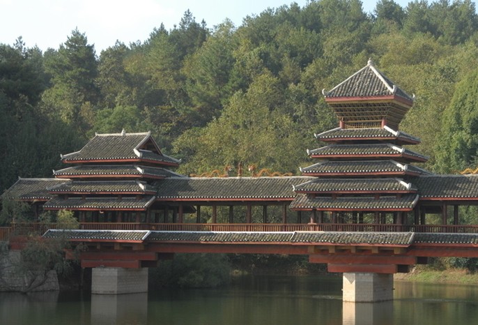 鼓樓和花橋,是侗族建筑文化的代表。凡是侗寨,都必建鼓樓和花橋。1994年貴州鼓樓花橋模型曾在北京民族文化宮展出,黨和國家的一些領導人前往參觀,對侗族的建筑和侗歌給予了很高的評價。