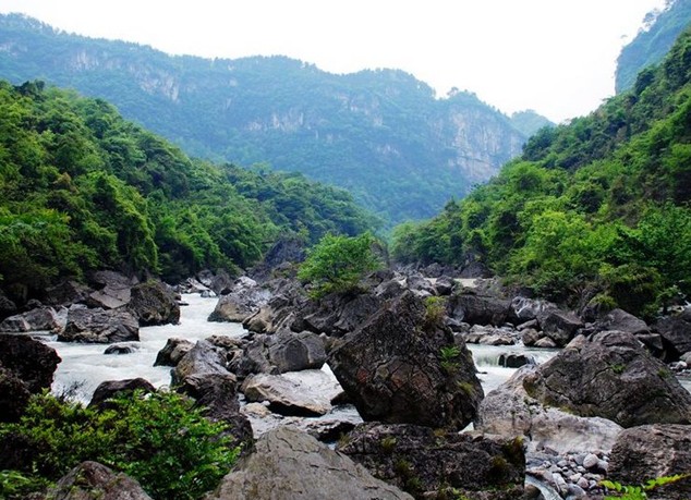 景區(qū)內(nèi)植被茂密,覆蓋度高,植被類型較豐富,大部分為亞熱帶原生性較1強(qiáng)的次生林。在河谷兩側(cè)斜坡上有原生性較強(qiáng)的石灰?guī)r山地常綠、落葉闊葉混交林和竹林;在河流周期性淹沒(méi)的河漫灘上以及河流兩岸水邊,有以窄葉蚊母樹(shù)、長(zhǎng)柄竹葉榕、河灘冬青及二翅六道木為優(yōu)勢(shì)的河灘灌叢;在河谷以上低中山黃壤分布地區(qū),有以馬尾松林為優(yōu)勢(shì)的人工針葉林。風(fēng)景區(qū)內(nèi)植物種類豐富,有維管束植物414種,分別隸屬275屬116科。其中有不少種類的珍稀植物,如國(guó)家一級(jí)重點(diǎn)保護(hù)植物紅豆杉、國(guó)家二級(jí)重點(diǎn)保護(hù)植物櫸樹(shù)、香果樹(shù)、木莢紅豆樹(shù)、三尖杉、銀杏等。