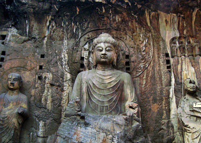 奉先寺的九軀大像的背后有很多長方形的小龕,這是大約在宋、金時代,人們?yōu)榱吮Wo大像龕,依龕修建了木結(jié)構(gòu)屋檐式建筑,這些建筑影響了佛像的通風,加速了佛像的風化,因而后來被拆除。