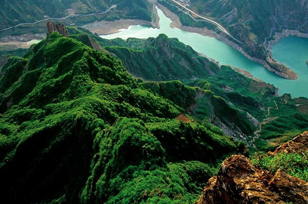 位于太行山南麓。河南省輝縣市上八里境內(nèi),面積約34平方公里,是一座25億年前山崩地裂形成的地質(zhì)遺跡奇觀,景區(qū)內(nèi)以一線天,柱狀峰林,天生橋,大絕壁為主體,溝交錯,崖臺環(huán)抱,飛瀑流泉和清溪幽潭相互輝映。