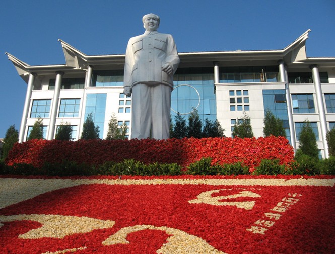 雕塑的中心為毛澤東和朱德圓雕,兩翼為革命隊(duì)伍的勝利會(huì)師。雕塑長度為19.27米,寓意1927年中國共產(chǎn)黨人在這里創(chuàng)建了井岡山革命根據(jù)地;高度為8米,寓意今年是井岡山革命根據(jù)地創(chuàng)建80周年。
